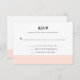 Une carte RSVP de mariage simple et élégante, avec une bande rose vif sur le fond, et un arrière - plan blanc immaculé avec un texte noir gras.