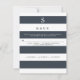 GAMME DE COULEURS : bleu marine et blanc COLLECTION DE DESIGN : Cartes de réponse RSVP à design vertical assorti avec choix de menu (il suffit de supprimer ou de remplacer le texte sur cette ligne si vous n'en avez pas besoin). Avec un thème de design chic et tendance à larges rayures, cette invitation a un style contemporain dans l'air du temps. Chaque couche de texte alterne avec le bleu foncé et le blanc pour un effet simple mais époustouflant. Graphique audacieux, mais élégant et avant-gardiste. Nous disposons d'une gamme complète de produits coordonnés. L'initiale monogrammée et les informations de RSVP sont faciles à personnaliser grâce aux champs de modèle de personnalisation.