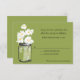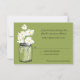 Carte de réponse 3.5x5 : Parfaite pour un mariage champêtre ou peut-être que vous aimez simplement les pots Mason ! Vieux pot Mason vintage rempli de marguerites blanches sur un fond de vert printanier fleuri. Si vous avez des questions sur ce design ou si vous souhaitez une modification de couleur, veuillez m'envoyer un email à paula@labellarue.com Vérifiez également les Cartes d'INVITATION, de RÉCEPTION et de PLACEMENT des INVITÉS pour assortir !
