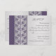 Carton d'invitation pour l'anniversaire de mariage avec un motif damassé d'un effet violet scintillant sur un dégradé de gris argenté.