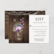 Des RSVP rustiques avec un pot en maçon rempli de fleurs sauvages violets, violets et lavande, avec respiration et verdure pour bébé et orné d'un ruban violet. Le dos de la carte est muni de lampes à cordes blanches avec un bocal en maçon violet pâle sur un arrière - plan patiné en bois de grange. Si vous désirez ce design sur un produit correspondant, ou si vous avez besoin d'aide, veuillez me contacter par l'intermédiaire de mon magasin.