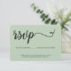 Présentation de la carte de réponse Simple Sage Green sans envoi postal - une solution élégante et respectueuse de l'environnement pour vos invitations de mariage. Cette carte de réponse est un parfait mélange d'élégance, de fonctionnalité et d'éco-responsabilité, conçue pour les couples modernes qui apprécient à la fois le style et la durabilité.
