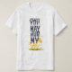Ce design ludique et humoristique de T-shirts s'inspire de l'histoire d'Aladdin et de la lampe magique, avec une touche spirituelle et suggestive. L'expression "JE NE SUIS PAS ALLADIN MAIS" apparaît en haut, suivie par "VOUS POUVEZ ME BOULEVERSER" en caractères bleus gras et empilés, séparés par des nuages blancs fantaisistes. Une lampe magique dorée se trouve au fond, avec une bouffée de fumée jaune émergeant, ajoutant au thème magique amusant. Contre un solide arrière - plan noir, les couleurs vibrantes et le jeu de mots enjoué en font une chemise attrayante et divertissante pour les amateurs d'humour, de puns et un peu de malheur !
