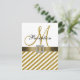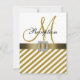 Faire-part de réception de mariage à monogramme doré et blanc avec un motif de rayures diagonales et un ruban de satin doré imprimé et une broche en diamant carrée imprimée sur un design de carte carrée et plate. Conception de la mise en page par Elke Clarke ©2012. Graphiques sous licence. Personnalisez avec vos noms de monogramme et le texte de l'invitation à la réception de mariage en utilisant les invites ou sélectionnez "personnalisez-le" pour plus d'options d'édition. Les mariées adorent les invitations embellies de bijoux et de rubans jusqu'à ce qu'elles arrivent au bureau de poste et réalisent que les invitations coûteront beaucoup plus cher à envoyer à leurs invités. Ces invitations et accessoires de pochette de mariage ont la photo du ruban de satin et de la broche en diamant IMPRIMÉE sur la carte plate. Vous obtenez l'effet élégant sans le coût supplémentaire et le travail d'assembl