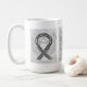 La tasse d'ange gardienne présente le tableau d'un ange-ruban de conscience blanc et noir qui représente la prise de conscience pour mettre fin au racisme. Des tasses ou des tasses d'art d'ange blanc et noir peuvent être customisées de messages personnalisés pour créer des tasses de cause pour les collecteurs de fonds, les cadeaux de tasse de conscience, ou d'autres événements ou occasions spéciaux.