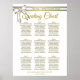 Faites de votre réception de mariage une belle avec ce tableau de sièges. Conçu dans le cadre de notre Suite Mariage White & Gold Ribbon, il présente un design simple mais élégant avec du texte en or sur un arrière - plan blanc avec un ruban blanc et un arc avec garniture en or. Ce graphique montre les affectations de table afin que vos invités aient un temps facile à trouver la bonne table.