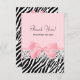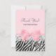 Un carte de remerciements rose précieux de cadeau de baby shower de fille avec une copie noire et blanche à la mode de zèbre, bordée avec une dentelle blanche féminine d'oeillet et un ruban rose-clair mou attachés dans un arc girly mignon. Personnalisez ce bébé précieux de poster de animal que le cadeau vous remercient en s'ajoutant ajoutant un message spécial des mercis de la maman et du bébé. Image imprimée d'appartement, arc et dentelle non réels.