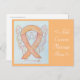 L'impression d'art de carte postale d'ange gardien présente l'image d'une peinture d'ange au ruban de sensibilisation pêche. Ajoutez vos propres mots ou message facultatifs à la carte postale pour des cartes d'art d'ange personnalisées ! Vous pouvez également supprimer le texte pour une impression de carte postale d'ange en art uniquement. Les cartes postales de peinture de ruban d'ange de sensibilisation pêche peuvent être personnalisées avec des messages personnalisés pour faire de superbes images ou photos de cause de sensibilisation pour les collectes de fonds, les cadeaux de sensibilisation ou d'autres événements spéciaux. Offrez cet art d'ange en tant que cadeau de ruban de sensibilisation pour toute occasion.