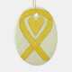 Le ruban de sensibilisation du coeur fête l'ornement d'art pendentif présente la peinture d'un coeur jaune de conscience. L'art ruban de coeur de conscience jaune peut être customisé de messages personnalisés pour créer des ornements ou des pendentifs de grande conscience pour des collecteurs de fonds, des cadeaux de Noël ou de vacances de sensibilisation, ou des marchandises rubans de sensibilisation d'autres événements de cause spéciale ou d'occasions. Le ruban jaune de sensibilisation montre le soutien au cancer de l'os ou à l'ostéosarcome, le soutien au retour de nos troupes / forces armées, MIA/POW, la prévention du suicide, l'endométriose, le cancer de la vessie, les parents adoptifs, l'acceptation craniofaciale, et spina bifida plus.