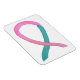 L'aimant aer présente la peinture d'un ruban de conscience rose et turquoise. Le ruban de sensibilisation turquoise et rose signifie soutenir le cancer du sein héréditaire et le cancer de l'ovaire. Le cancer du sein utilise un ruban rose. Le cancer de l'ovaire utilise un ruban turquoise. Ce ruban combine les deux couleurs pour sensibiliser les femmes qui sont à risque pour les deux cancers étant donné le risque de probabilité dans leurs gènes. Le ruban de sensibilisation turquoise et rose peut être customisé de messages personnalisés pour faire de grands magnets de cause pour des collecteurs de fonds, des cadeaux de sensibilisation, ou d'autres événements ou occasions spéciales.