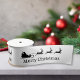 La silhouette noire festive de Destei d'un Père Noël dans un traîneau avec des rennes le poussant en avant. Il y a aussi une zone de texte personnalisable qui se lit maintenant : "Joyeux Noël". La couleur arrière - plan est blanche. AVIS : Vous pouvez changer les couleurs en n'importe quelle autre couleur, si vous le souhaitez.