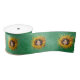 This roll of ribbon is green with a cute girl's face in the middle of bright fancy yellow sunflowers.