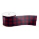 Ruban En Satin Burgundy and Blue Checkered Plaid Ribbon