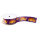 Le ruban satiné à thème Halloween présente des citrouilles sculptés sur un arrière - plan violet.