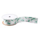 Ruban En Satin Feuilles verts et baies rouges Motif de Noël blanc