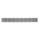 Un effet visuel saisissant est créé par un motif continu de lignes noires ondulées sur un fond blanc