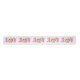 Joie rose avec baies ruban satin de Noël photo. Il montre le mot "JOY" avec des baies rouges et de la verdure tandis que au lieu de la lettre "O" il y a votre photo.
