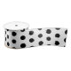 Ruban Satin motif à pois noir et blanc. Cercles ronds sur l'arrière - plan blanc sur ce ruban utilisé pour l'emballage et les décorations cadeaux.