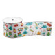 Ce joli ruban est polyvalent et peut être utilisé pour donner des cadeaux ou des projets artistiques et artisanaux. Le design comprend des équipements de camping tels qu'une tente, une lanterne, une boussole, un feu de camp, un sac de couchage, une torche, un camper-fourgon, un guimauve grillé, des jumelles, des arbres et plus sur un arrière - plan blanc.