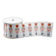 Ce ruban présente un biscuit pastel répétitif avec un casquette rouge sur un arrière - plan blanc. Les couleurs comprennent le rouge, le bleu, la marine, le rose et le blanc.