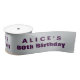 quatre-vingtième Anniversaire ou N'IMPORTE QUEL texte POURPRE d'arrière - plan ARGENTÉ fait sur commande de la couleur G09 d'ANNÉE vous pouvez customiser ce ruban d'anniversaire juste la manière que vous l'aimez ! Vous pouvez changer la couleur de l'arrière - plan pour un regard différent. Cette conception fonctionne bien sur un 3" au loin ruban.