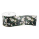 Ajoutez un accent fantaisiste aux cadeaux, faveurs et bien plus encore avec ce ruban floral. Il est doté d'aquarelle motif de pivoines blanches, de verdure et de parties scintillant en faux or et d'accents de feuille avec un arrière - plan de tableau noir faux. Ce ruban floral pastel est parfait pour les événements du printemps et de l'automne.