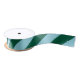 Un large motif à rayures inclinées vert foncé et bleu ciel clair font de ce ruban un choix facile pour la décoration de maison de vacances hivernale, emballage cadeau ou décoration de fête. Cette combinaison de couleurs est un peu preppy et un peu grandiose millénaire et le choix parfait pour vos projets d'emballage cadeau ou de décoration féminine.