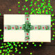 Ce rouleau de ruban pour Noël est vert clair avec une image répétée d'un squelette souriant tenant des ornements jusqu'aux yeux en portant un chapeau de Père Noël rouge à l'intérieur d'une forme éclatante rouge et verte avec des étoiles rouges vives.