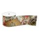 The overall effect of this Victorian Christmas collage ribbon is one of elegance, nostalgia, and a deep appreciation for the traditions of the past. It is a perfect choice for wrapping gifts, as it not only conceals the present but also adds an extra layer of sentiment and historical charm to the holiday season. The attention to detail and the classic imagery make it a cherished part of the gift-giving experience, evoking the spirit of a Victorian Christmas celebration.