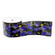 Ruban Gros-grain BLUE ROSES AND YELLOW BUTTERFLIES Black