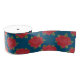 Une bobine de ruban Grosgrain romantique de 3 pouces de large pour customiser, avec un motif de Roses rouges tout-en-un, sur un arrière - plan Bleu profond que vous pouvez facilement changer si vous le souhaitez. Une partie de la collection Posh & Painterly 'Coeurs et Roses de Judy Adamson.