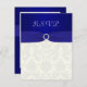 **** VEUILLEZ NOTER que le ruban et les bijoux sont des images imprimées et ne sont pas réels. Cette élégante carte de réponse en damas bleu et ivoire correspond à l'invitation de mariage présentée ci-dessous. Si vous avez besoin d'aide pour personnaliser cette carte RSVP, ou si vous souhaitez des articles supplémentaires assortis, envoyez un courriel à niteowlstudio@gmail.com avec votre demande.