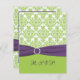 Cette carte de réponse RSVP damassée verte citron et lapis violet correspond à l'invitation de mariage présentée ci-dessous.