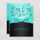Cette carte de réponse de fleurs bleu aqua et noir a un ruban imprimé bleu aqua et une boucle de bijoux aqua-marine et diamant imprimés qui correspond à l'invitation de mariage présentée ci-dessous. Si vous avez besoin d'autres articles assortis dans ce design, veuillez envoyer un e-mail à niteowlstudio@gmail.com.