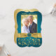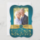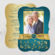 Cette élégante invitation photo pour les 50 ans de mariage, de couleur sarcelle bleu-vert et ornée de fleurs et de volutes dorées, comporte un ruban doré IMPRIMÉ et un médaillon sarcelle et doré à l'aspect de faux gravé. Elle dispose d'une zone de modèle où vous pouvez télécharger votre propre photo numérique. Vous pouvez supprimer le texte stylisé en écriture cursive "Noces de mariage" ou "50 ans". Tout le texte est personnalisable, ainsi que les choix de papier. AUSSI, si vous changez de police ou de taille de police, votre texte risque de ne plus être correctement mis en page. Zazzle ne corrigera rien en cas de fautes de frappe, de problèmes d'alignement ou autre, et je ne verrai pas votre invitation. Tout sera imprimé tel qu'il apparaît sur votre écran. Si vous avez besoin d'aide pour l'invitation, veuillez me contacter AVANT de la commander. Cette invitation est conçue pour s'adapter à la carte de forme incurvée de taille 5x7. Si vous changez de taille ou de forme, le design ne sera plus adapté, donc