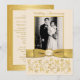 Cette élégante invitation photo de soixantième anniversaire de mariage, avec des fleurs dorées et ivoire sur fond à volutes, comporte un ruban doré IMPRIMÉ et un médaillon ivoire et doré à l'aspect faux-gravé. Elle comprend une zone de modèle pour que vous puissiez télécharger votre propre photo numérique. Vous pouvez supprimer le texte stylisé en cursive "Anniversaire de mariage" ou "60e". Tout le texte est personnalisable, ainsi que les choix de papier. ****VEUILLEZ NOTER que le papier doré est un or laiton très foncé qui modifiera les couleurs du design (transformera la photo en or, etc.), je ne recommande donc PAS d'utiliser ce papier. Le papier feutré modifiera également légèrement la couleur de votre photo. AUSSI, si vous changez de police ou de taille de police, votre texte risque de ne plus être correctement disposé. Zazzle ne corrigera rien pour les fautes de frappe, l'alignement ou autre, et je ne verrai pas votre invitation. Tout sera imprimé tel qu'il apparaît sur votre écran. Si vous avez besoin d'aide pour l'invitation, veuillez me contacter AVANT de la commander. Cette invitation est conçue pour s'adapter au format de carte 5x7. Si vous changez pour une autre taille, le design ne sera plus adapté, donc