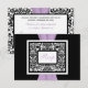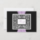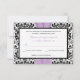 Cette carte de réponse en damassé noir et blanc comporte un ruban lavande violet imprimé qui correspond à l'invitation de mariage présentée ci-dessous. Si vous avez besoin d'autres articles assortis ou si vous souhaitez une autre combinaison de couleurs, veuillez envoyer un courriel à niteowlstudio@gmail.com avec votre demande.