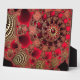 Un design fractal étincelant avec des spirales ornées de rouge foncé et vif, incrustées de filigrane doré comme des coquillages métalliques et cloutées de rubis scintillants.