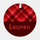 Un ornement en métal de Noël en cercle monogrammé avec un beau design en motif de plaid en diagonale en rouge rubis. Créez le cadeau customisé parfait en cliquant sur le bouton "personnalisé" pour ajouter un nom ou un message personnalisé dans le champ de modèle fourni. Cliquez sur le lien "Modifier à l'aide de l'outil de conception" pour modifier la police, la taille du texte et plus encore.