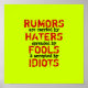 Citation et artiste éditée : Elizabeth Medina. Une orthographe erronée du mot propagé a été faite intentionnellement pour mieux express le sentiment. LES RUMEURS SONT TRANSPORTÉES PAR DES HATRES, RÉPARTIES PAR DES FOOLS ET ACCEPTÉES PAR DES IDIOTS. Parlez-en autour de vous! Potins, truisme, commérages, mots à vivre. MODIFIEZ N'IMPORTE QUEL POSTER EN CANVAS. SATISFACTION GARANTIE OU ARGENT DE RETOUR ! Changez d'arrière - plan à n'importe quelle couleur, taille, papier ou forme sur la plupart des modèles et des produits. Vous pouvez positionner l'art n'importe où, ajouter votre nom, phrase préférée ou logo d'entreprise / entreprise. Offrez-en un cadeau à vous-même ou à l'être aimé ! Idéal pour REVENTE. Plus vous commandez plus vous économisez d'argent! Droit d'auteur . Correspond à d'autres éléments. Si vous avez des questions ou des difficultés avec une commande, veuillez téléphoner au TÉL : 1-888-892-9953 aux États-Unis ou au (408) 983-2800 International. Horaires : 8h-18h (11h-21h00), du lundi au vendredi. Liez ceci ou autant d'autres éléments favoris que vous aimez à votre facebook, twitter, blog, site personnel, site d'affaires et plus encore. Twitter n'importe quel objet & faire $$. Est libre de s'inscrire. TRÈS FACILE À LIER ! Contactez le service à la clientèle pour vous inscrire.