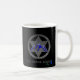 Rural Badge Classic black and white mug. It has a white handle and white interior. Comes in 11 oz or 15 oz sizes. It is microwave and dishwasher safe.