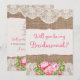 Cliquez sur "Customiser!" pour déplacer/ajuster le texte et les couleurs! Pour que la mariée rustique/country soit ! Une façon élégante de demander à vos filles de se tenir à vos côtés et de ne pas passer le grand jour ! Avec un burlap et dentelle avec de jolies roses roses et des pivoines roses Matching Invitations, Bridal Party Cards, Postage, Enveloppes et plus encore disponible dans ma boutique. ©2015 Mariages*n*Whimsy