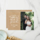 Un carte de remerciements rustique avec vos détails de remerciement sur un arrière - plan kraft rustique à côté de votre photo de mariage préférée. Vous pouvez personnaliser l'inverse avec votre message de remerciement spécial ou laisser vide. Une façon parfaite de dire merci ! Conçu par Thisisnotme©