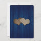 Faire-part de mariage bleu marine rustique avec un bocal en maçon et des coeurs de burlap sur un arrière - plan en bois de grange.