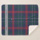 Cosy holiday jeté couverture dispose d'un classique et rustique bleu marine, chasseur vert, rouge et gris clair écossais plaid motif avec un design de texte personnalisé qui peut être personnalisé avec votre nom de famille monogramme ou d'autres termes préférés.