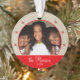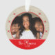 Flocon de neige rouge rustique Photo ornement de conservation de Noël. Décor photo de Noël sur mesure avec un arrière - plan rustique et des étoiles rouges. Ajoutez votre photo, votre nom et votre année. Un ornement de conservation sucré ou un cadeau unique.