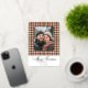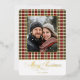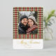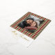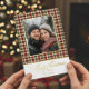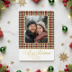 Partagez votre gaieté de vacances dans le style avec cette carte de Joyeux Noël rustique plaid, avec un arrière - plan confortable rouge, vert et doré et un cadre arrondi en feuille d'or d'angle pour votre photo de famille ou de couple préférée. Élégant script de feuille d'or sur un arrière - plan blanc souple livre vos salutations de vacances, tandis que votre nom ajoute une touche personnelle. Créé par Simply Farmhouse Press.