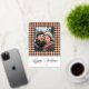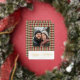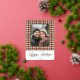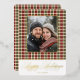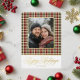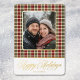 Partagez votre gaieté de vacances avec cette carte de Noël rustique plaid, avec un arrière - plan tan rouge, vert et doré et un cadre en feuille d'or arrondi pour votre photo de famille ou de couple préférée. Élégant script de feuille d'or sur un arrière - plan blanc souple livre vos salutations de vacances, tandis que votre nom ajoute une touche personnelle. Créé par Simply Farmhouse Press.