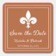 Mariage élégant et simple Enregistrer les Stickers Date avec une fleur de lis contre un arrière - plan rouille. Ce design est un choix unique pour annoncer un mariage moderne. Facile à customiser avec vos détails mariages. Cliquez sur "Customiser" pour trouver d'autres options de personnalisation.