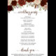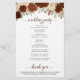 Ces programmes de mariage sont élégants et de bon goût, tout en étant toujours à l'aise avec le budget. Le design comprend un bevy de roses d'aquarelle peints à la main dans les tons de rouille orange, de bois brûlé et de pêche au corail, entouré de feuilles d'eucalyptus et de feuillage de jardin. La typographie présente une calligraphie de script dentée, et il y a de la place pour des détails sur la cérémonie, la fête de la mariée, et un bref merci.